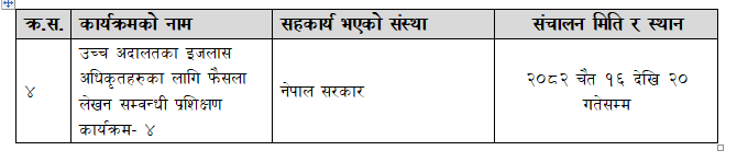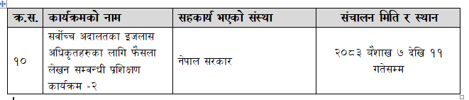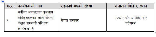 सर्वोच्च अदालतका इजलास अधिकृतहरुका लागि फैसला लेखन सम्वन्धी प्रशिक्षण कार्यक्रम -२ (२०८३ बैशाख ७ देखि ११ गतेसम्म)