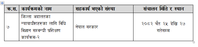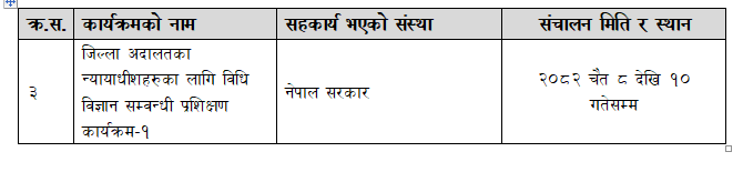 जिल्ला अदालतका न्यायाधीशहरुका लागि विधि विज्ञान सम्वन्धी प्रशिक्षण कार्यक्रम-२ (२०८२ चैत २५ देखि २७ गतेसम्म)