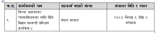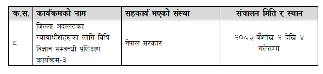 जिल्ला अदालतका न्यायाधीशहरुका लागि विधि विज्ञान सम्वन्धी प्रशिक्षण कार्यक्रम-४ (२०८३ बैशाख ६ देखि ८ गतेसम्म)